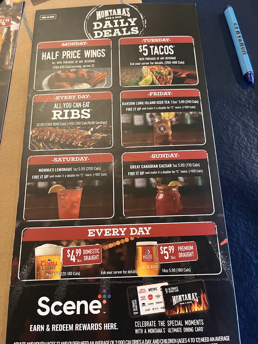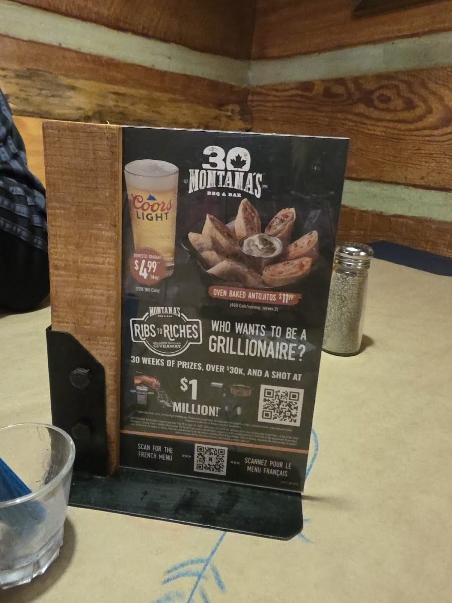The menu at Montana’s BBQ & Bar offers a variety of dishes primarily centered around classic barbecue and grill-style fare. It features a broad selection of steaks, including aged sirloin options served with traditional accompaniments like onion rings, baked beans or coleslaw, and seasoned fries. Guests can also find a range of "Dig In" dishes such as BBQ chicken and steak fajitas, which come with fresh vegetables, cheese, and warm tortillas.